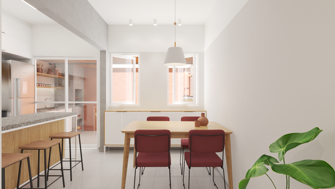 a partir da demolição de alvenarias, propusemos uma nova setorização e fluxo que conecta os espaços traduzindo o cotidiano dos moradores.