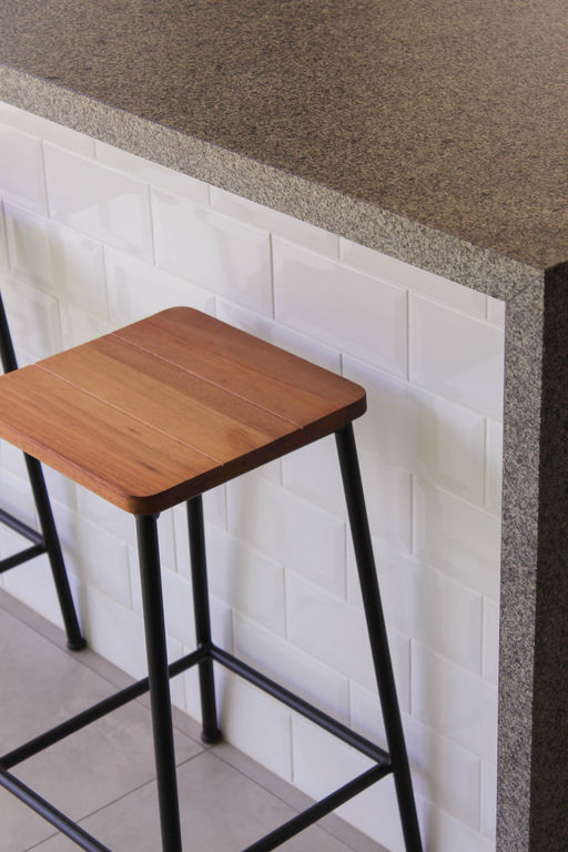 a pintura em cimento queimado e o piso porcelanato off white concretizam um ambiente neutro e despojado.